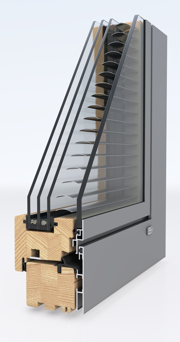 Im Holz-Alu-Fenster DesignLine Privacy ist bereits eine Jalousie, die Sie auf Wunsch sogar per Fernbedienung steuern können.