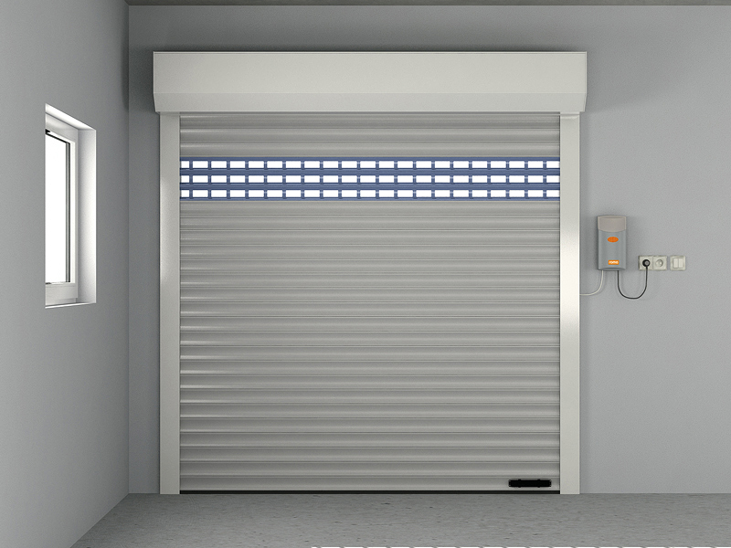 Beim ROMA Rolltor wird der Torpanzer aus der Senkrechten um eine Stahlwelle aufgewickelt. Im Falle eines "Blendkappensystems" in einen schützenden Aluminiumkasten.