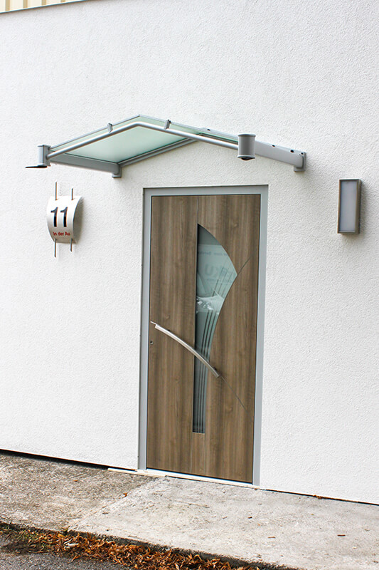 Um die Attraktivität Ihres Hauseinganges zu erhöhen, gibt es von uns Lösungen nach Maß. Die Vordach-Systeme überzeugen durch eine formschöne und unaufdringliche Architektur. Die Typenvielfalt ermöglicht die harmonische Abstimmung auf neue oder bereits bestehende Fassaden und unterstreicht den individuellen Charakter Ihres Hauses.